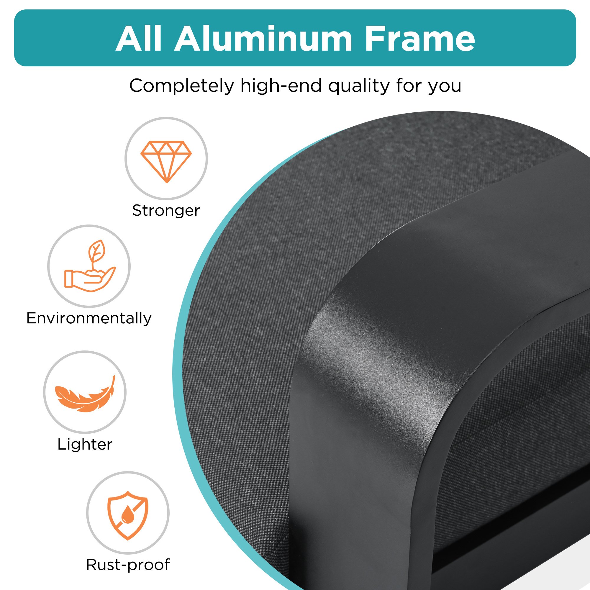 1.100% Aluminum Frame: This contemporary outdoor furniture ensemble boasts a sturdy yet lightweight powder-coated aluminum framework, ensuring durability without bulkiness. Unlike its conventional iron or steel counterparts, this aluminum patio set stands resilient against weather-induced fading, rust, and corrosion, promising years of dependable service.