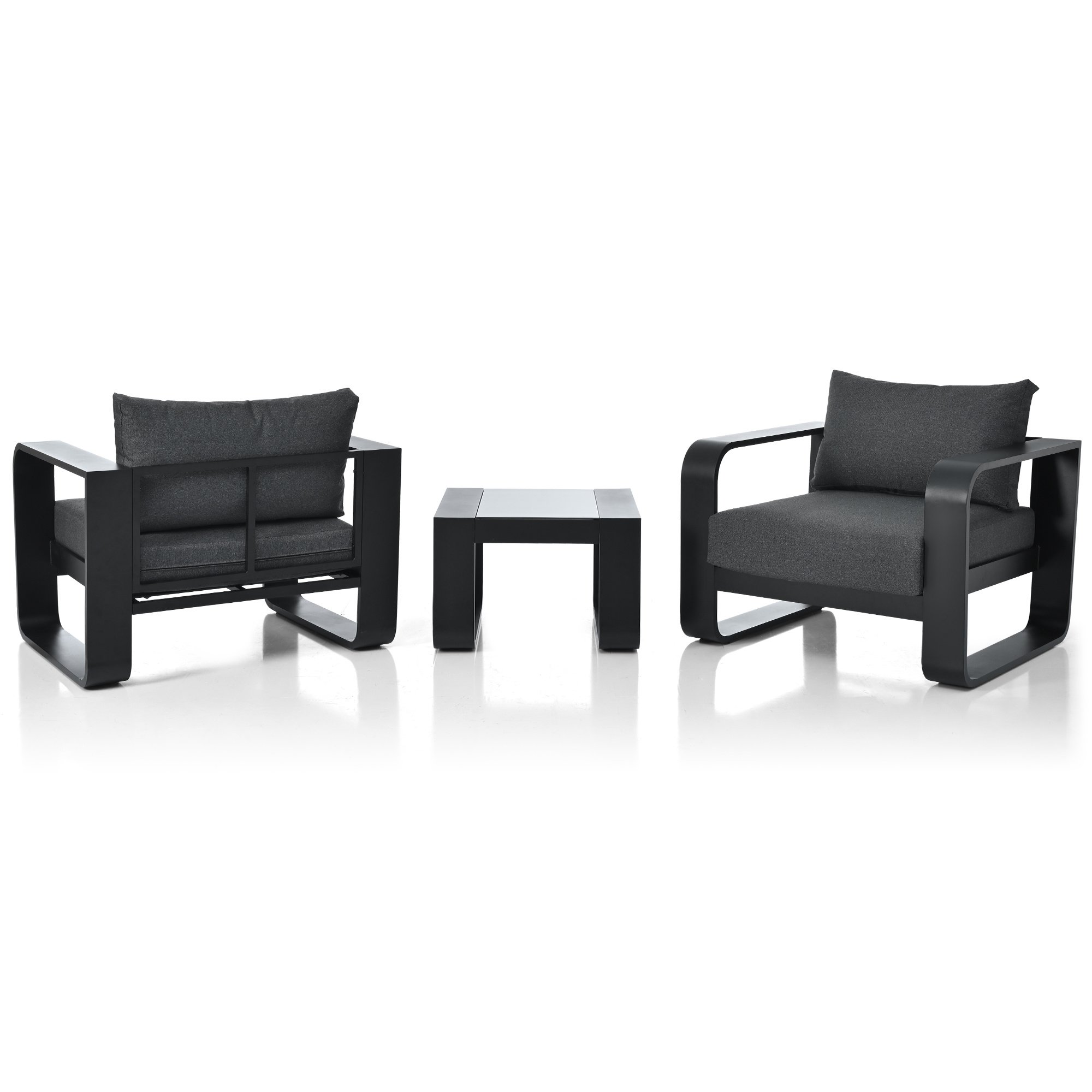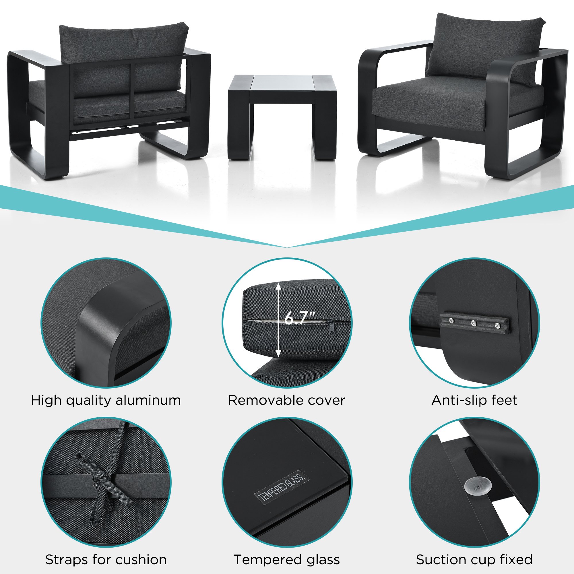 Home > 3-pieces Aluminum Frame Patio Furniture With 6.7" Thick Cushion And Coffee Table, All Weather Use Olefin fabric Outdoor Chair