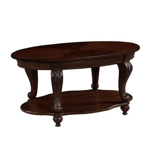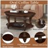 > 42'' oval wood coffee table for Living Room, 2-Tier Solid Wood Cocktail Table with Open Storage Shelf, Easy Assembly, Cherry ( Color written on Packag