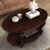 42'' oval wood coffee table for Living Room, 2-Tier Solid Wood Cocktail Table with Open Storage Shelf, Easy Assembly, Cherry ( Color written on Packag