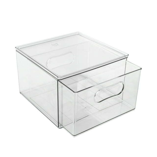 The Clear Plastic Large Drawer is here to help kick off your new organizational adventure. Completely modular to make the most of your space, the clear plastic design ensures contents are always visible for easy and stress free organization. Use as a stacking or singular storage solution in the closet, bathroom, home office, and more! ,we believe that any space can function efficiently while looking beautiful with smart systems on your side. This storage solution includes a large drawer with a durable frame for a versatile storage solution. Give your items a home with The Clear Plastic Large Drawer.