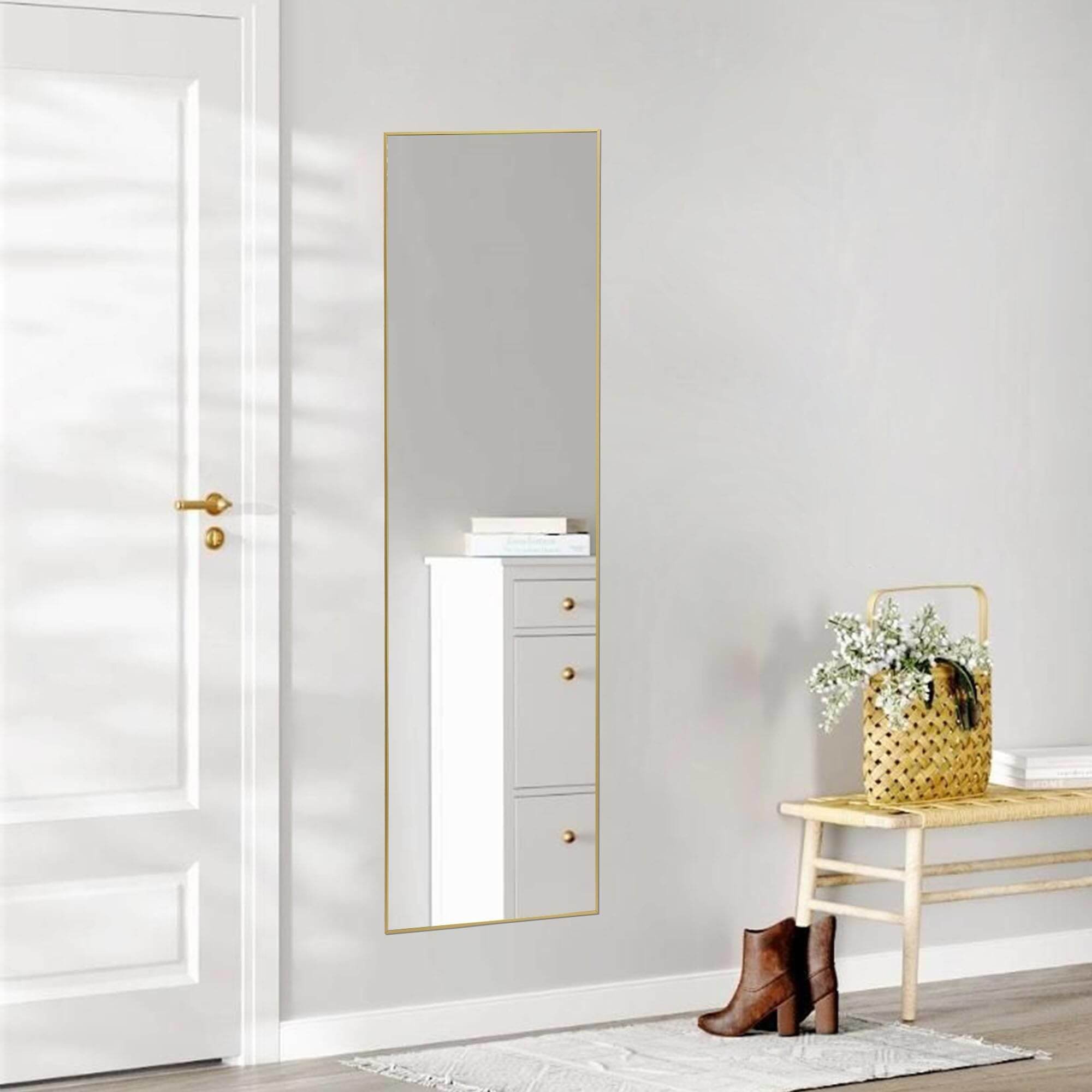 Floor Standing Mirror, Wall Mirror with Stand Aluminum Alloy Thin Frame,16''*59'',Gold-rect