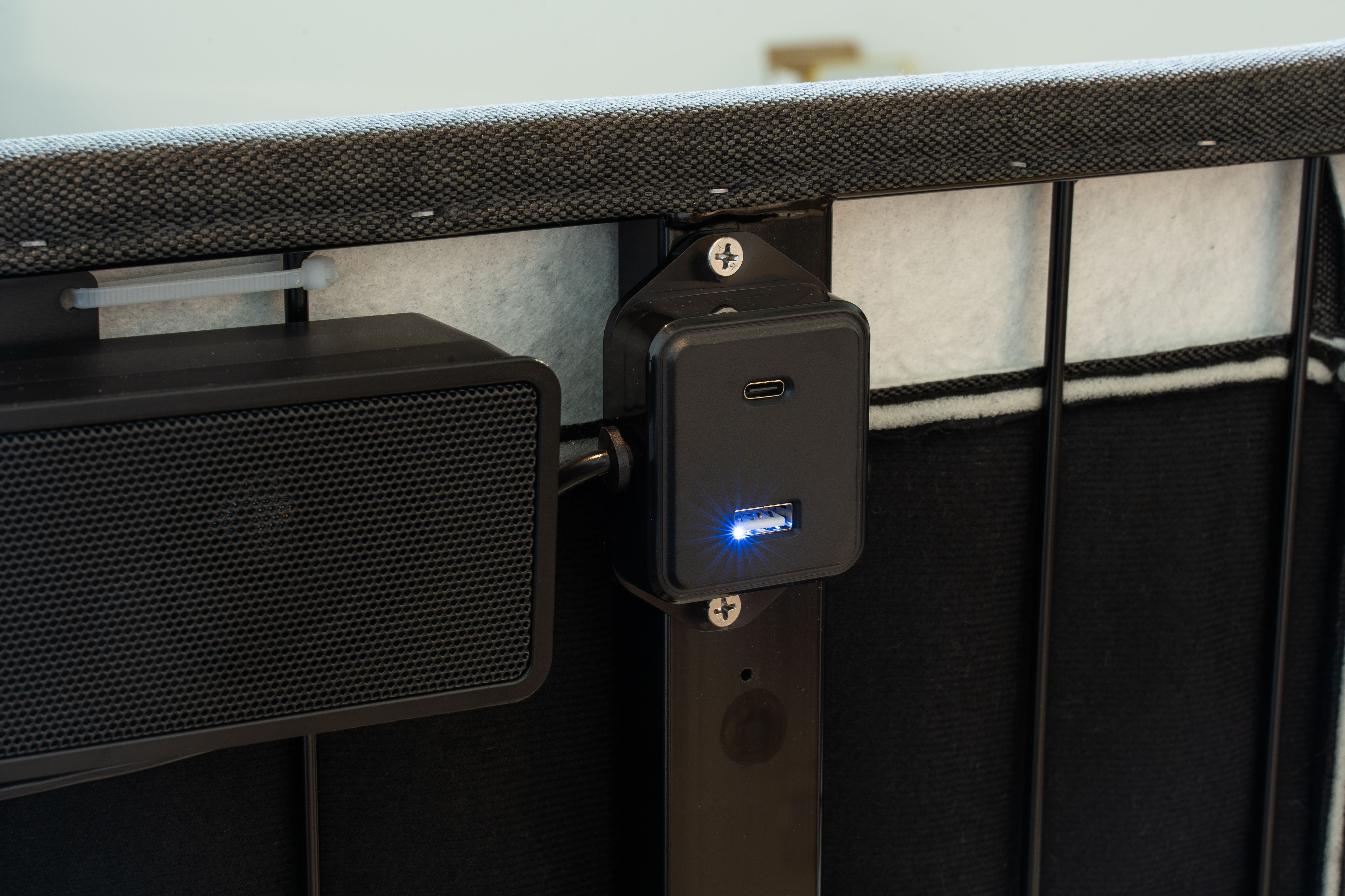 Immersive Sound Experience Adjustable Base includes 2 Speakers, 4 Subwoofers, USB/USB-C Ports on both sides, Underbed Lighting