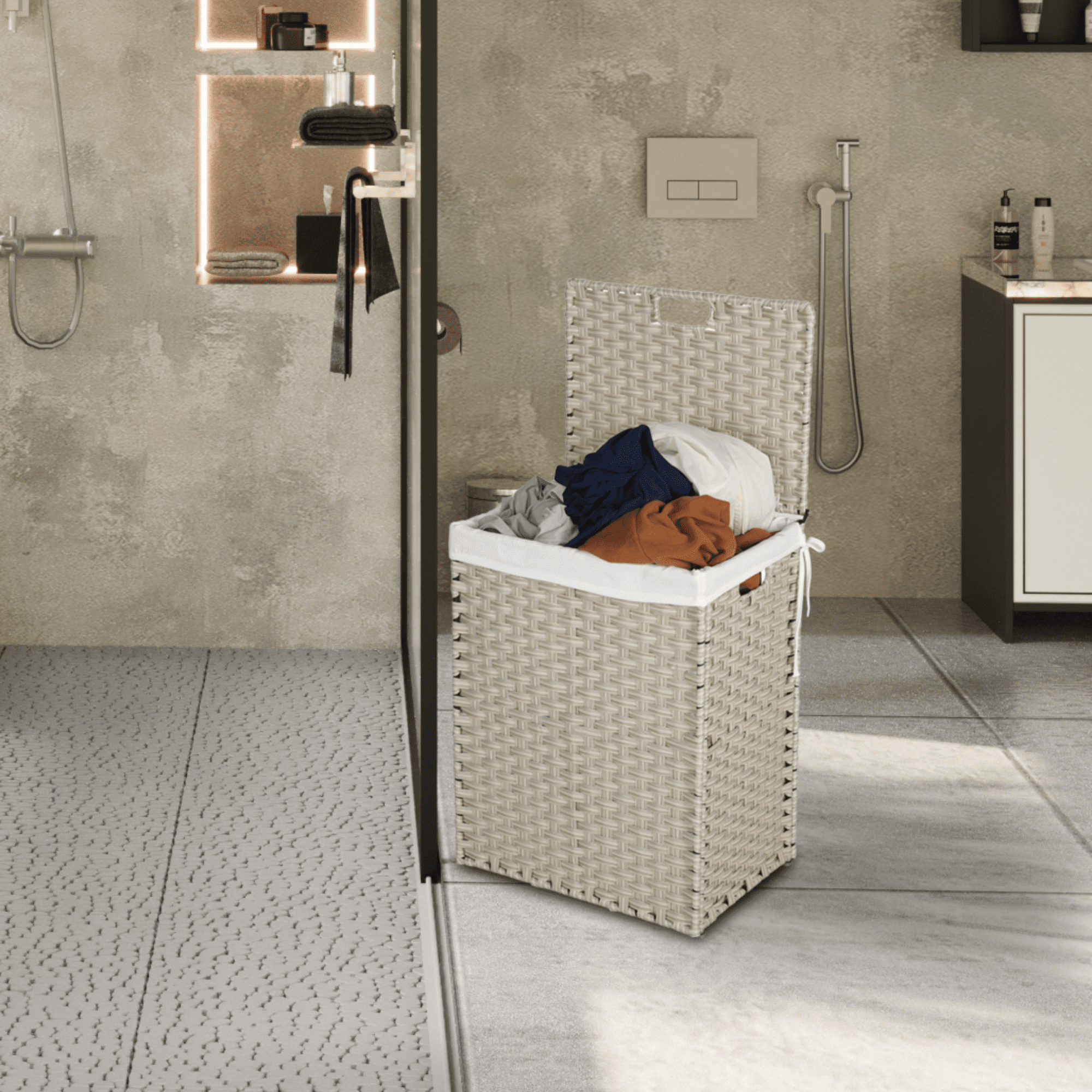 Classic Gray Laundry Hamper 26.4 Gal (100L) Lid & Removable Liner