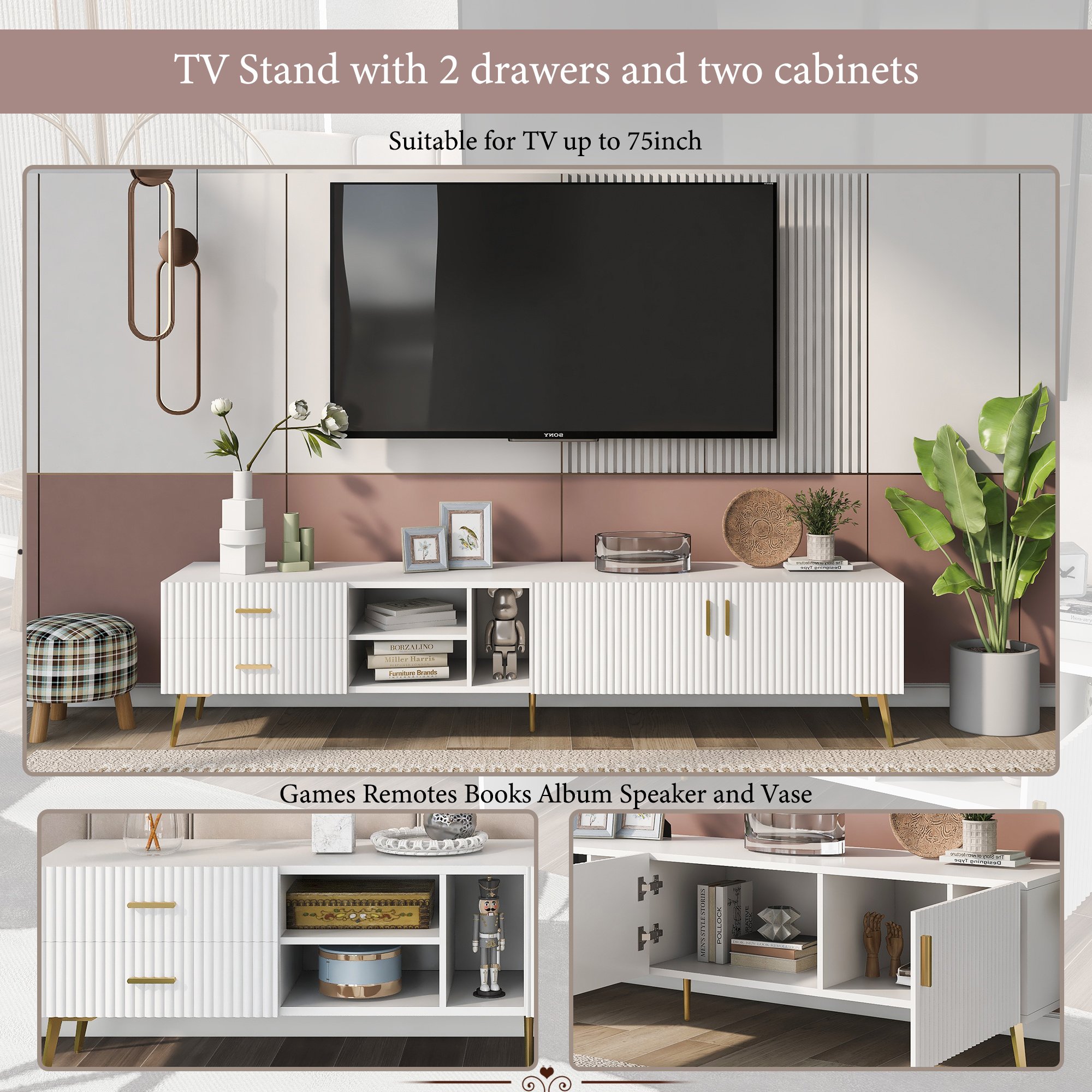 Modern TV Stand with 5 Champagne legs - Durable, stylish, spacious, versatile storage TVS up to 77"
