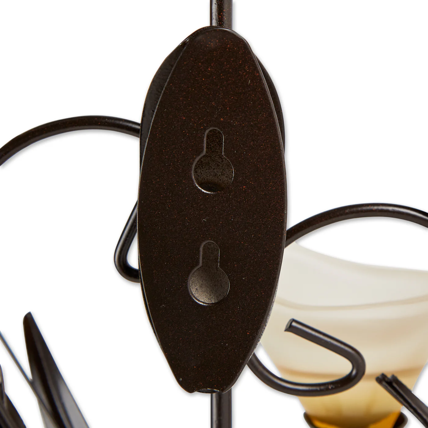 • A stunning floral display, this wall sconce's elaborate metal sculpture and amber colored lily candle cups will create a warm glow that lights up any space.