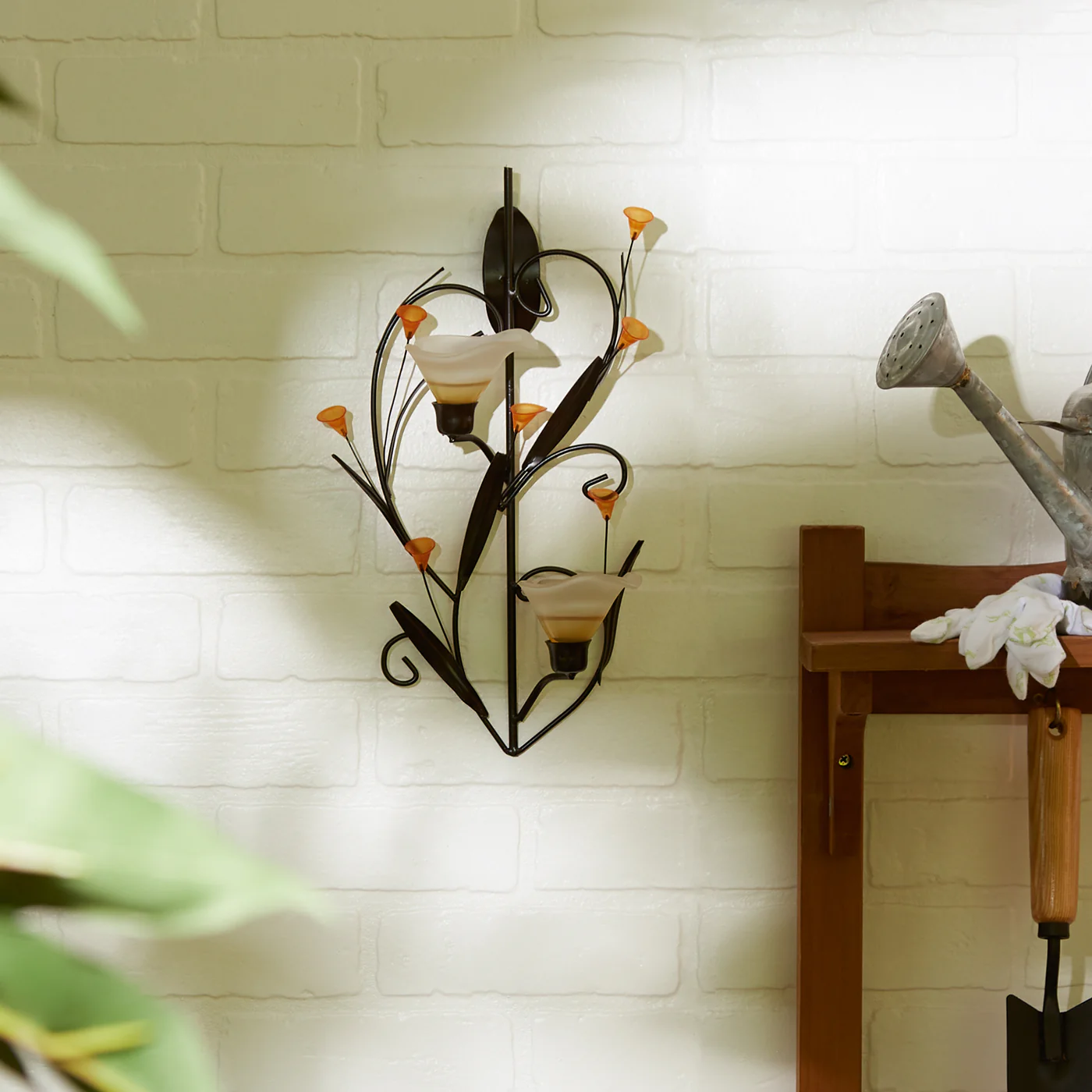 Amber Lilies Candle Wall Sconce - Elegant Home Decor Accent