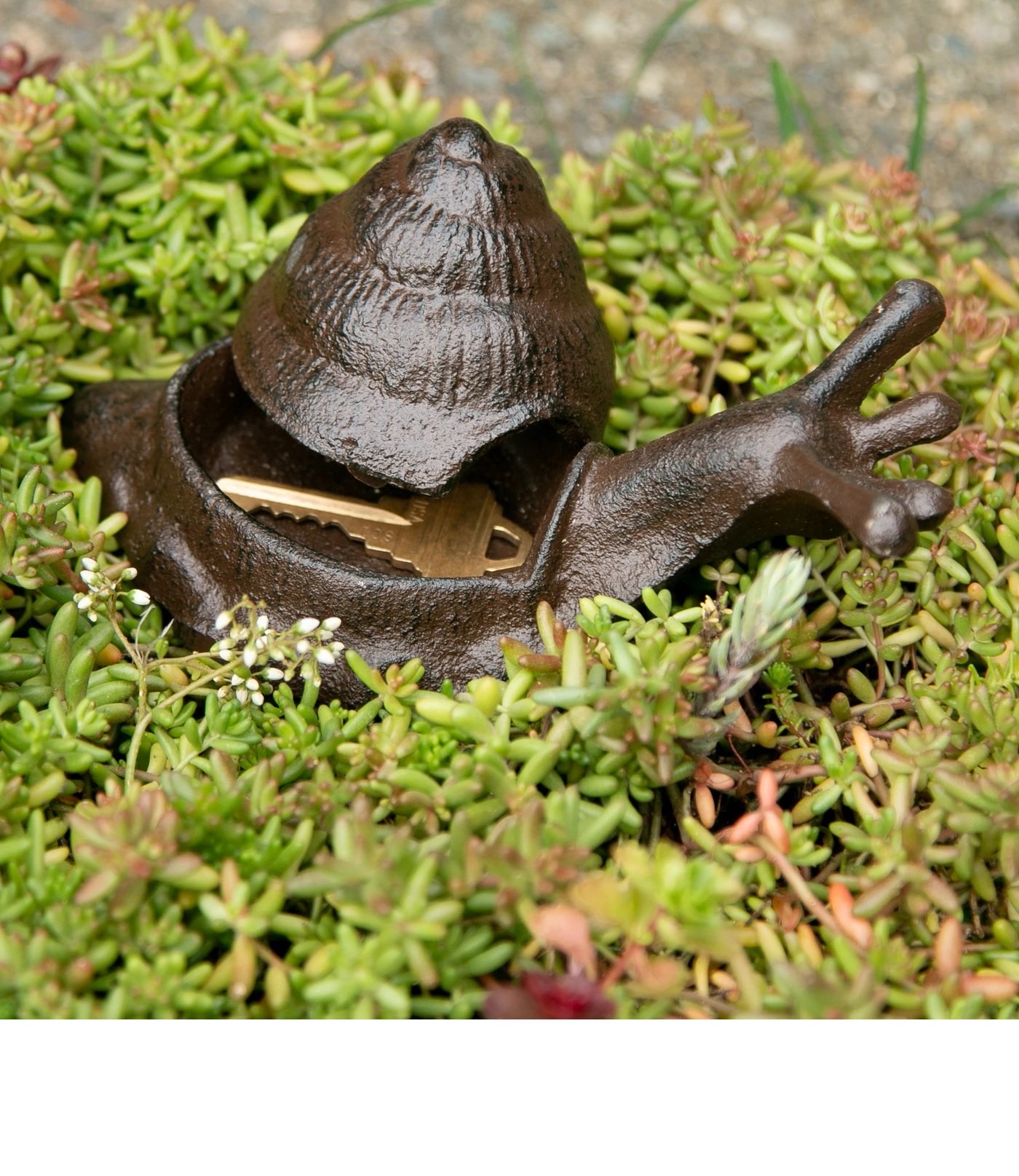 Never get locked out again! This charming cast iron snail sheds its shell to provide a sneaky hiding spot for any number of treasures including your spare key while serving the dual purpose of style and functionality. Instead of hiding your key under the mat which puts your home at risk, use this secretive key holder as either front porch or garden decoration. Your spare key will be easily accessible and outdoor aesthetic improved!
