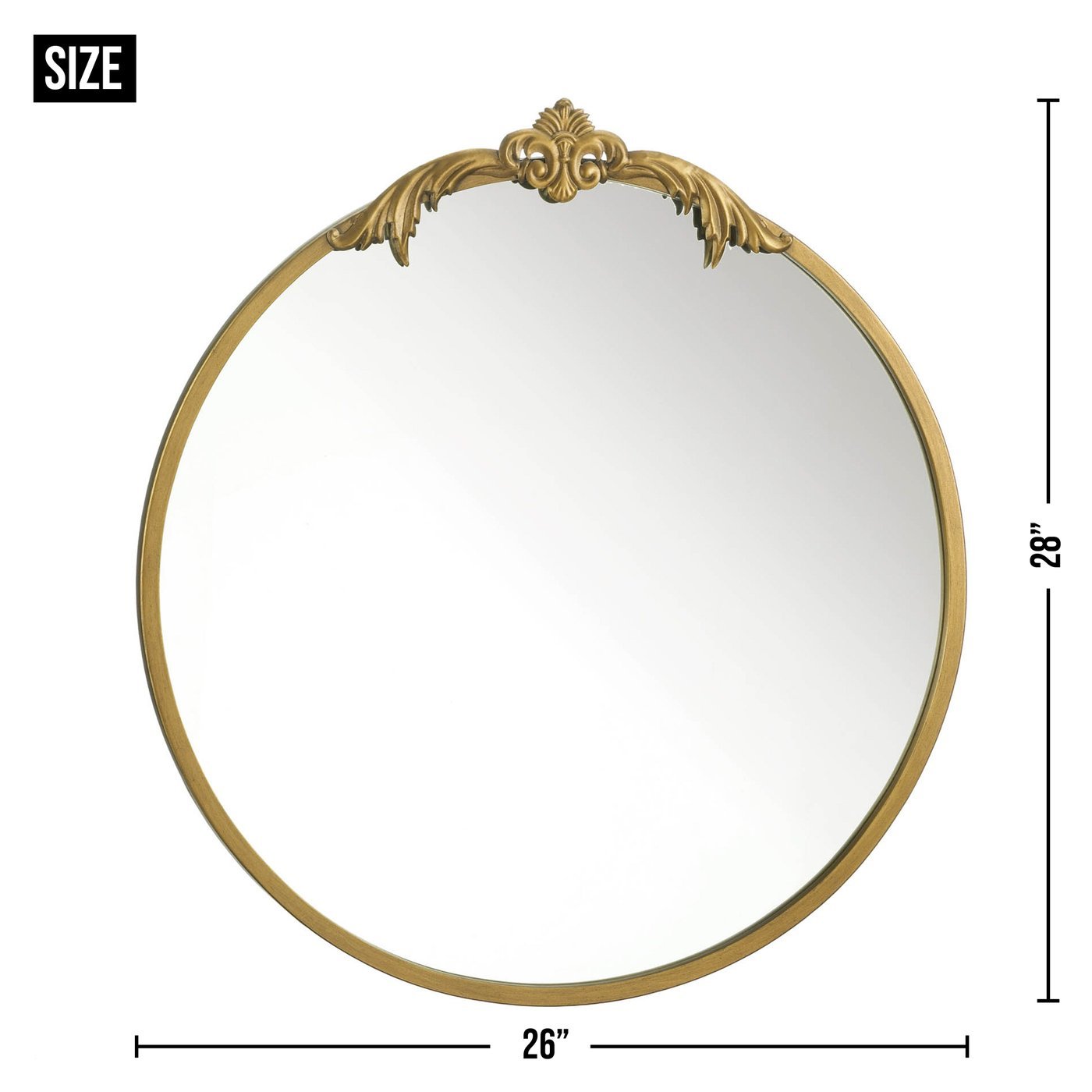 • French inspired, this ornate gold accent mirror will infuse your space with elegance. The gold painted iron frame features intricate detailing on the top, giving it a royal look. Perfect for the bedroom or front entryway, this ornate mirror will reflect your good taste. A great housewarming gift or personal home décor piece!