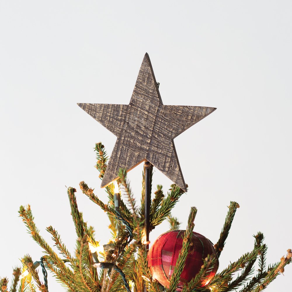 Arrange this wooden star atop your tree for a simplistic Christmas look. It features two twine strings to tie to your tree and a metal post to stabilize it.