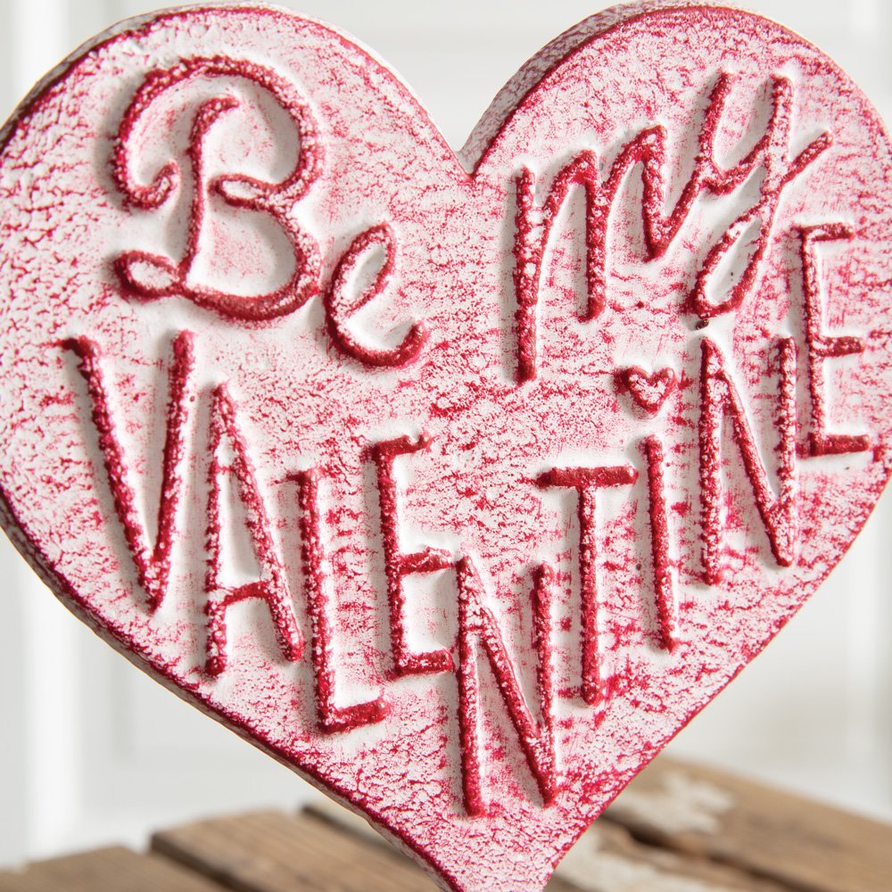 Oh, won't you be my Valentine? Our lovable tabletop heart sign brings all the joy to Valentine's day! This item is crafted from cast iron.