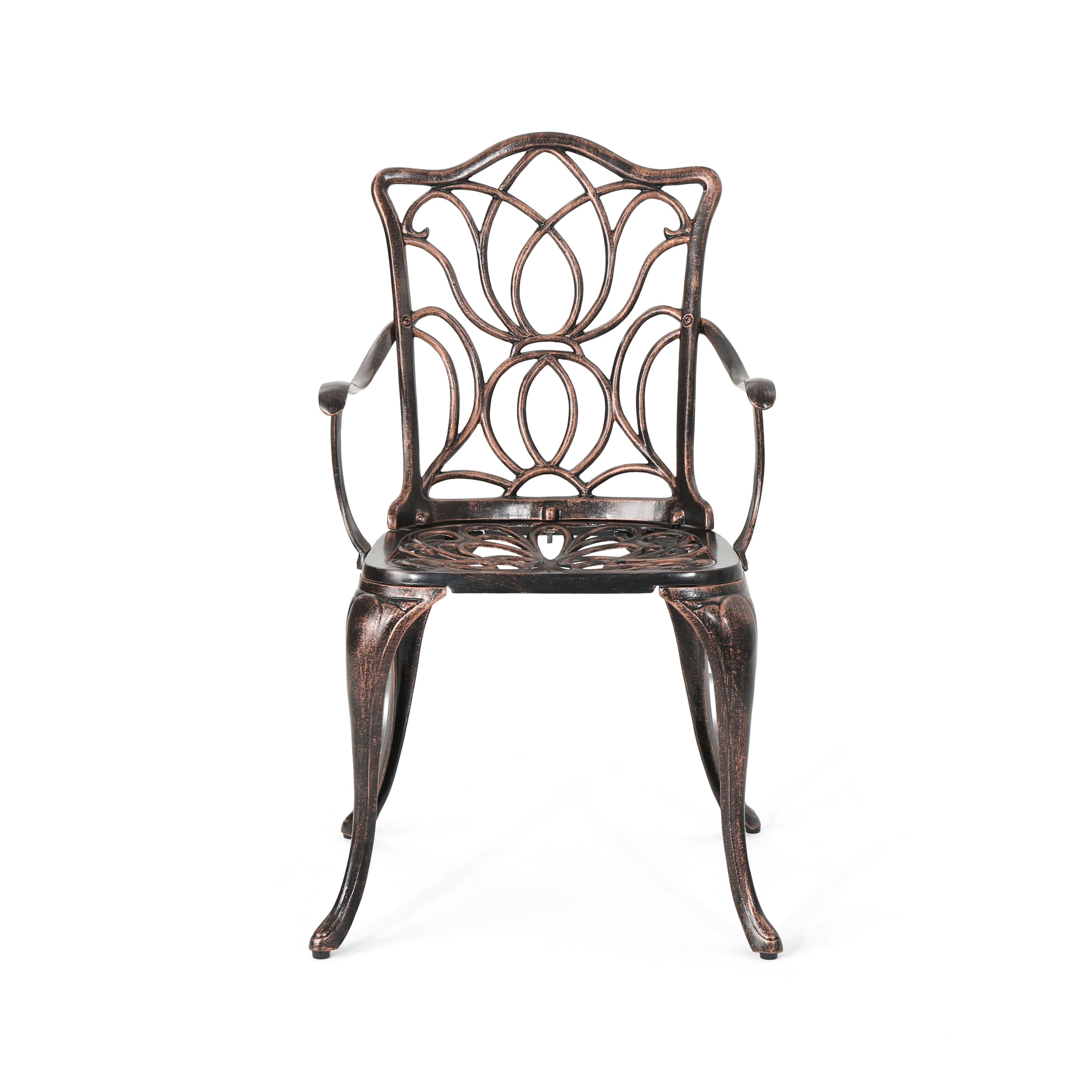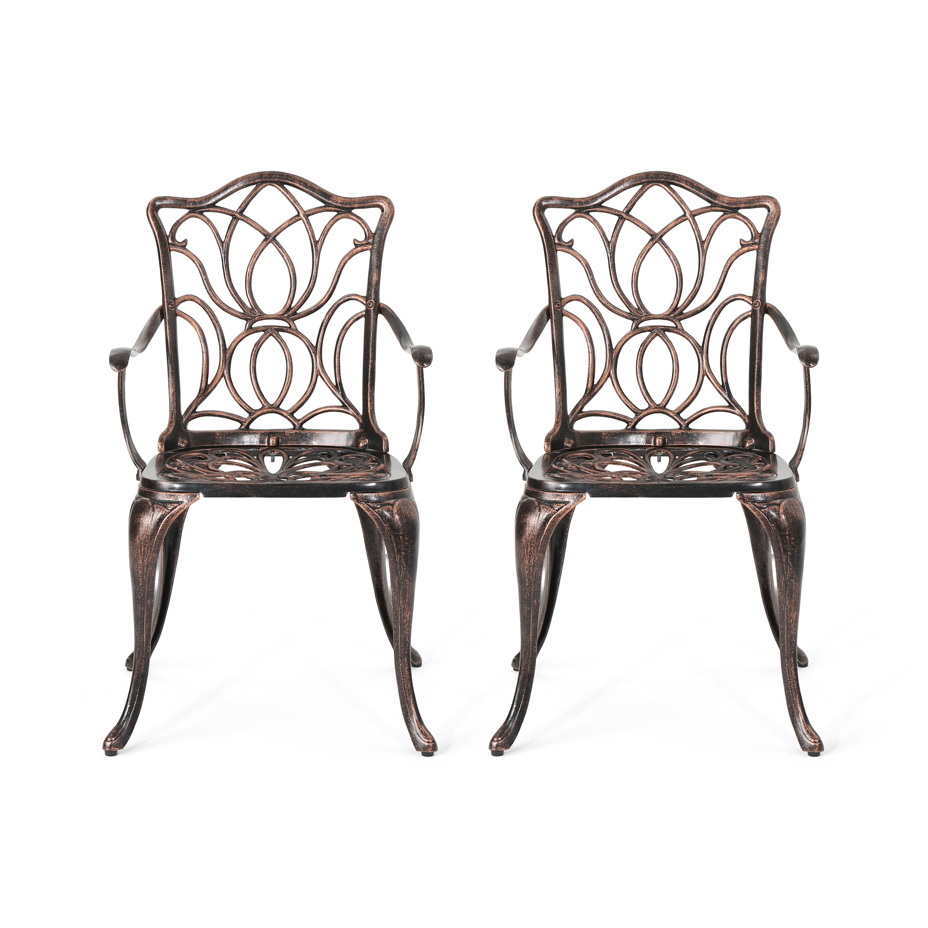 Make luxurious al fresco dining a reality. With durable cast aluminum frames, our gorgeous outdoor dining chairs combine quality with classic aesthetics. The look is completed with a stunning floral-cut design and tulip-inspired backrests, making these chairs ideal for any patio or backyard. Well-made and incredibly trend-forward, these chairs are sure to tie your entire outdoor dining area together with a flourish.