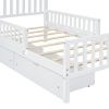 Twin Size Wood Platform Bed with Guardrails on Both Sides and Two Storage Drawers ,White